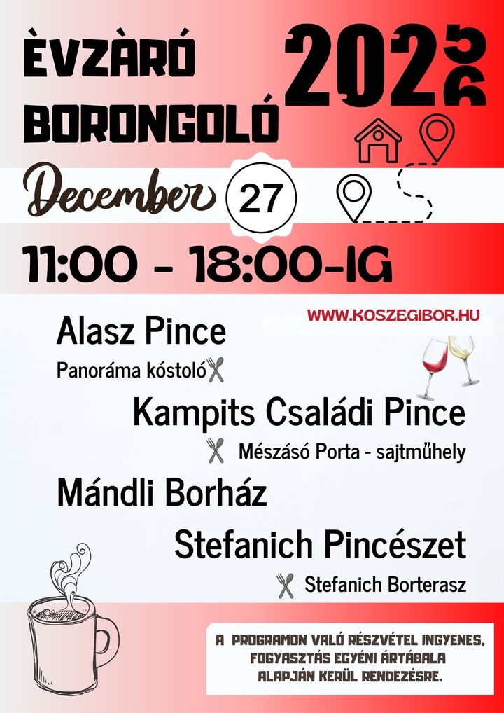 December végén, amikor az év utolsó napjait számláljuk, a borok szerelmesei számára különleges élményben lehet részük: a Pogányok szőlőhegy egyik legizgalmasabb bortúráján. A borász közösségünk által szervezett esemény 2025. december 27-én kerül megrendezésre, 11 órától egészen 18 óráig várunk minden kedves érdeklődőt.
