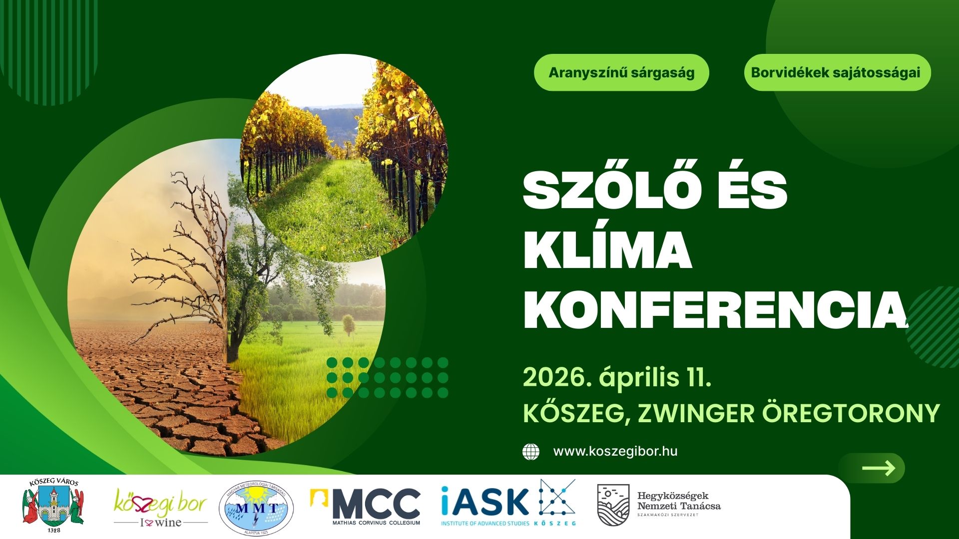 Kivételes lehetőség vár mindenkit, aki a borok és a szőlő világának szerelmese. Az immár 16. alkalommal megrendezésre kerülő Szőlő és Klíma Konferencia 2026. április 11-én Kőszeg városában, a Magyar Meteorológiai Társaság szombathelyi csoportjának és Kőszeg Városa szervezésében.